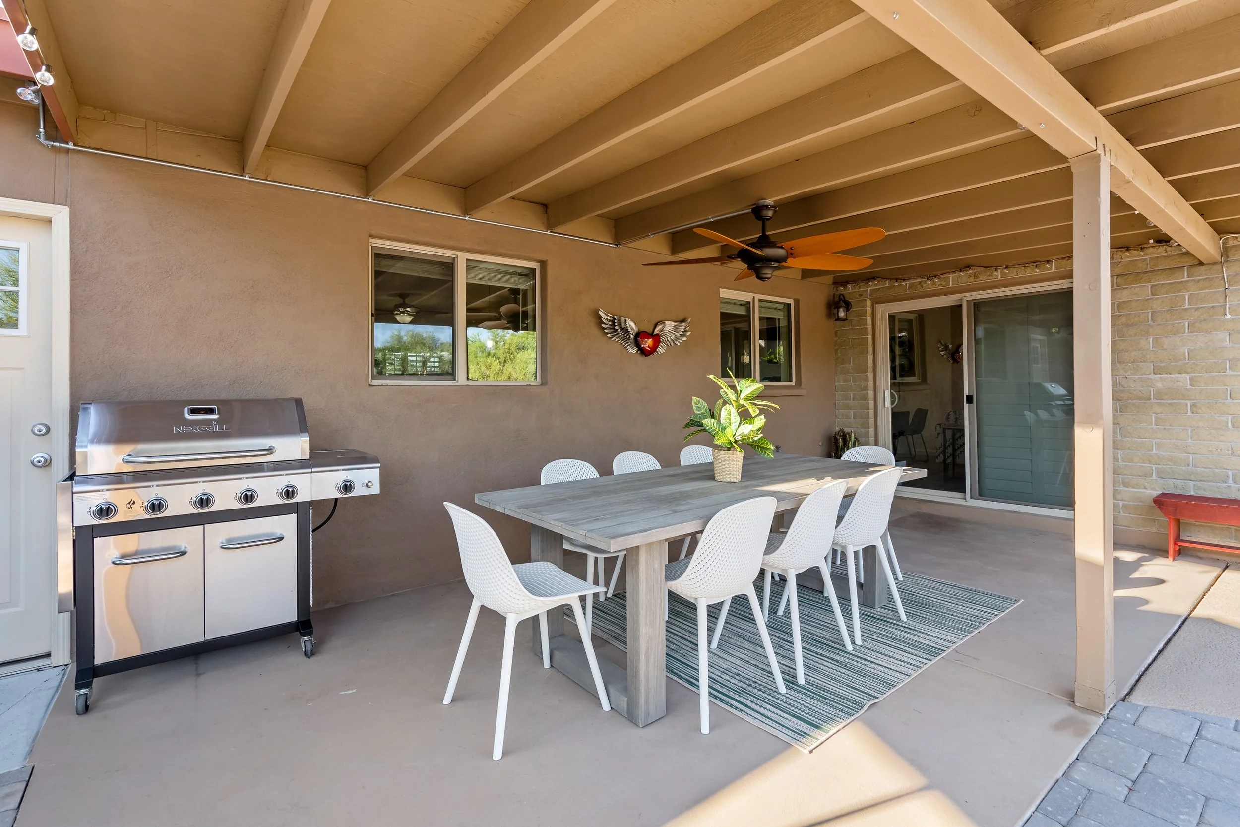 Desert charm meets modern comfort, offering spacious living areas, a private pool and hot tub. Nestled near Saguaro National Park this home is ideal for groups looking to unwind and explore, with convenient access to dining, hiking, and attractions.