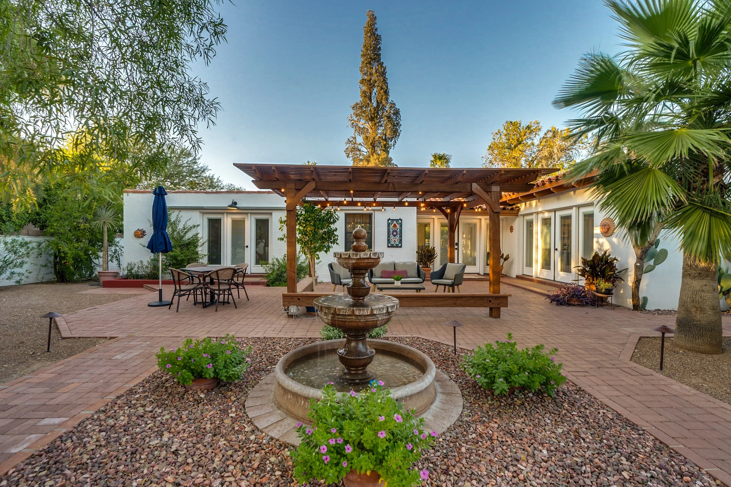 Stay in timeless elegance at this beautifully maintained 1935 residence. With three distinct accommodations—the Hacienda, Patagonia Casita, and Old Pueblo Studio—this retreat offers ample space for relaxation and gathering. Enjoy serene outdoor living spaces, a welcoming great room, and walkability to key attractions. Perfect for groups seeking a comfortable stay in the heart of Tucson.